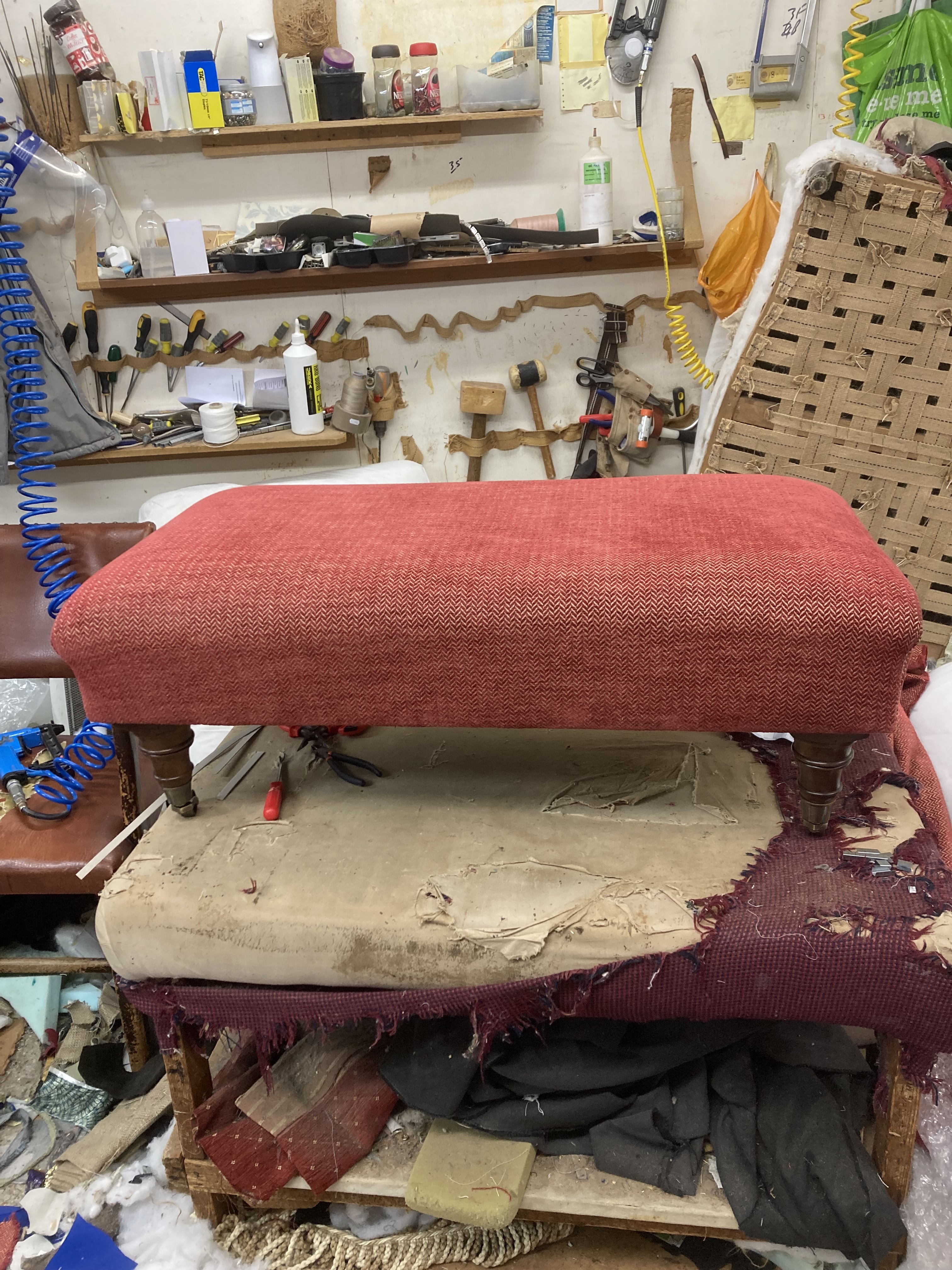 Next came the upholstery, a new single seat lightly buttoned with a fabric that was in stock, ie no lead time...