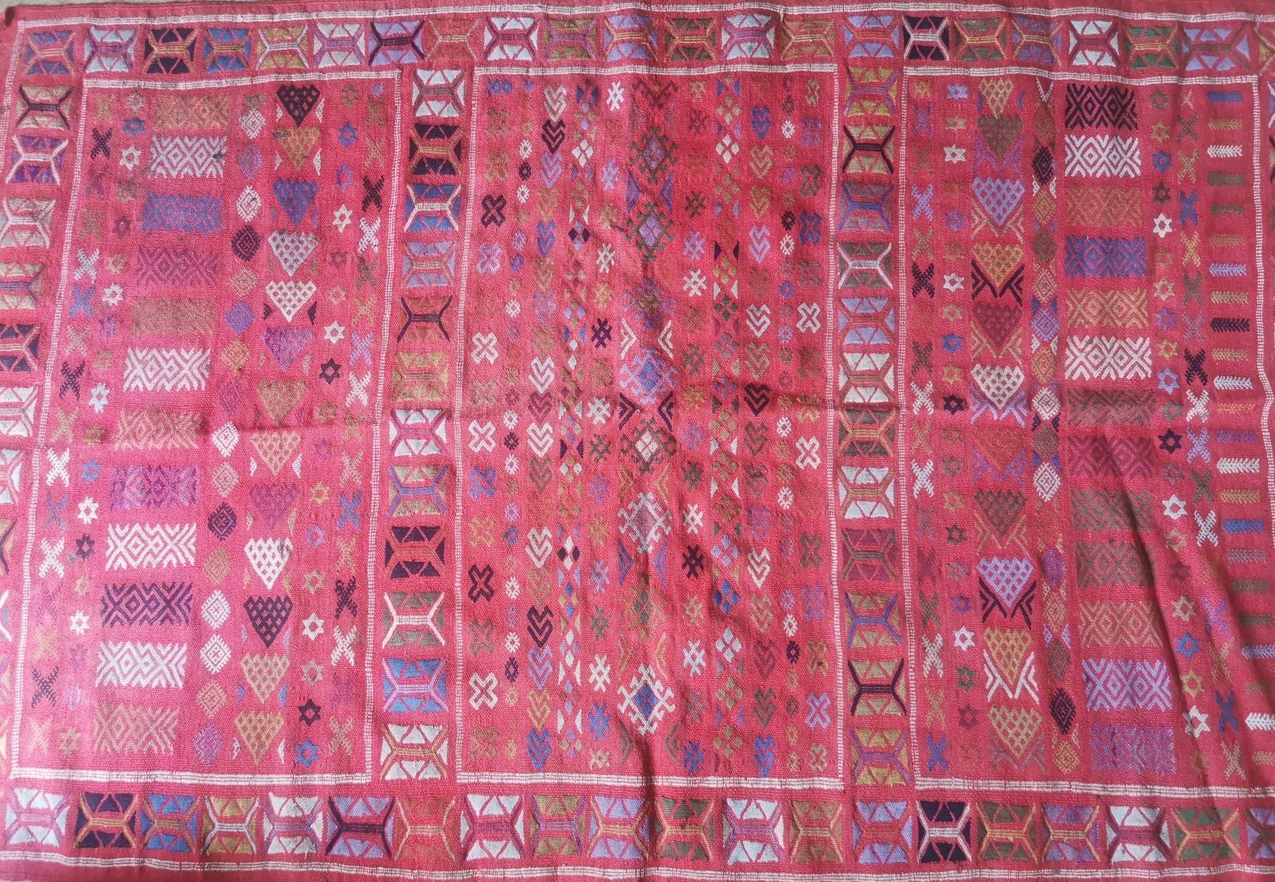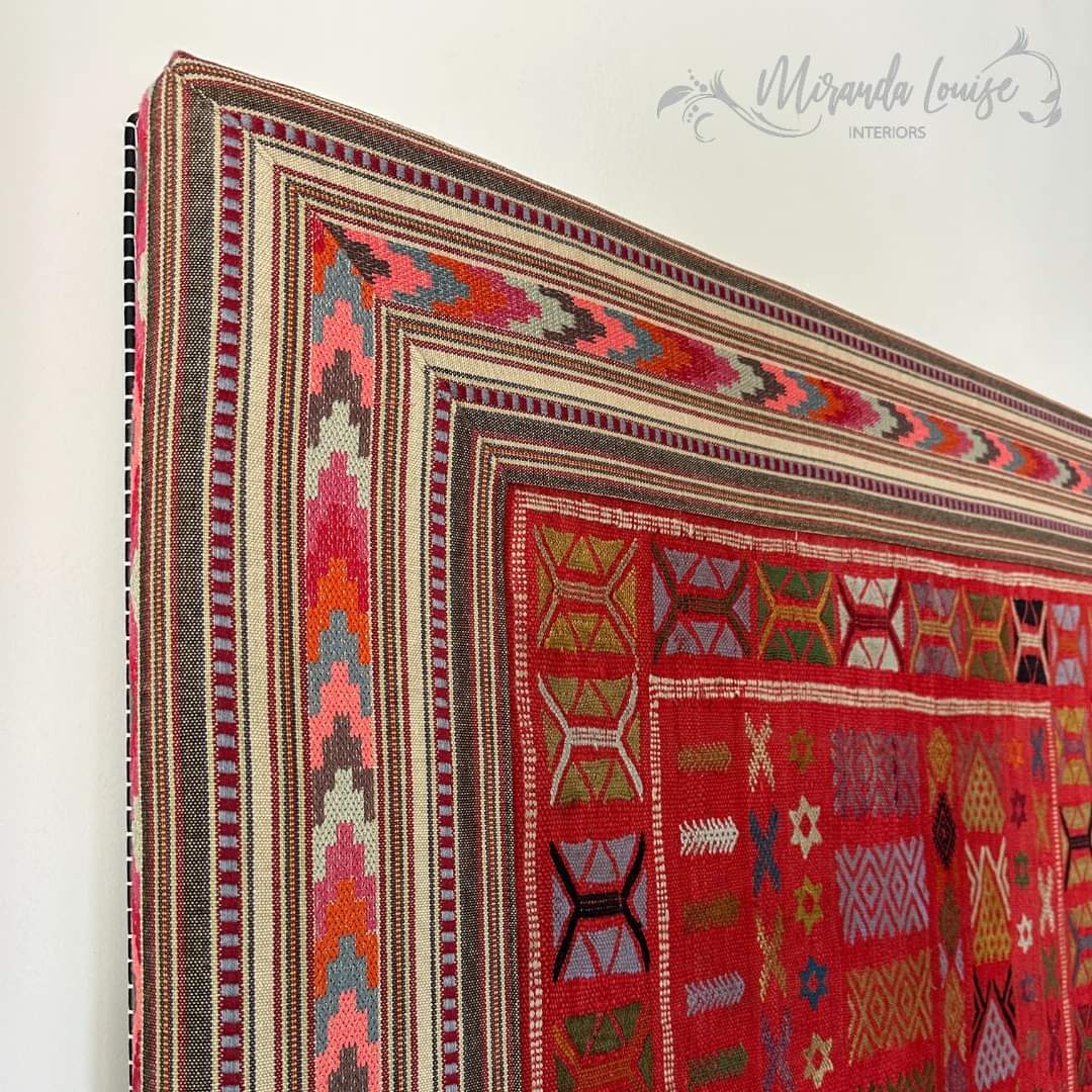 This lovely antique textile was a find in a little corner of an antique shop. It had no purpose at the time but it was clear it could be used for something. Ultimately that something was a very unusual headboard.