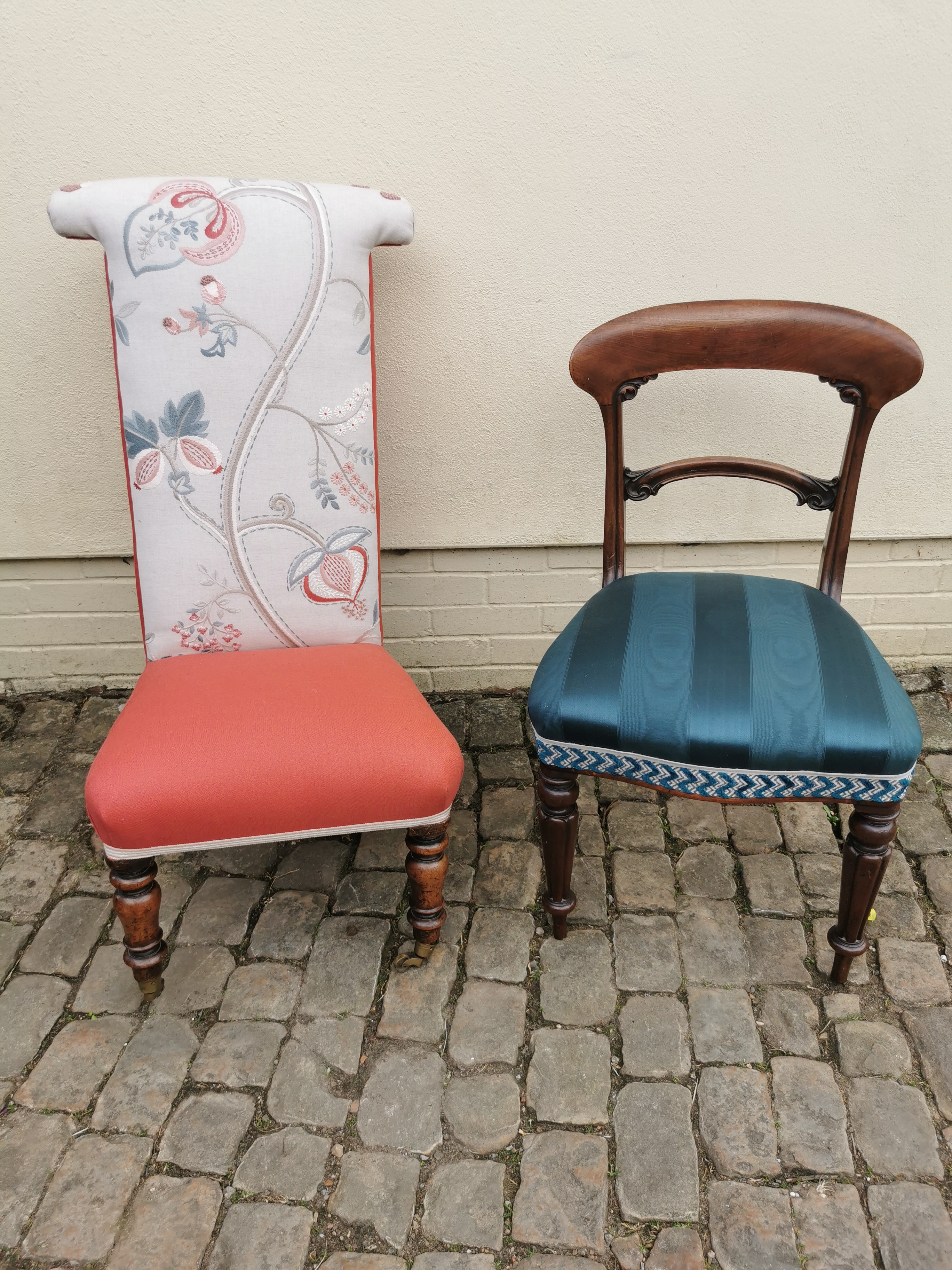 Fabrics can highlight the difference between two chairs even if they look similar, however cover them in the same fabric in a similar style....