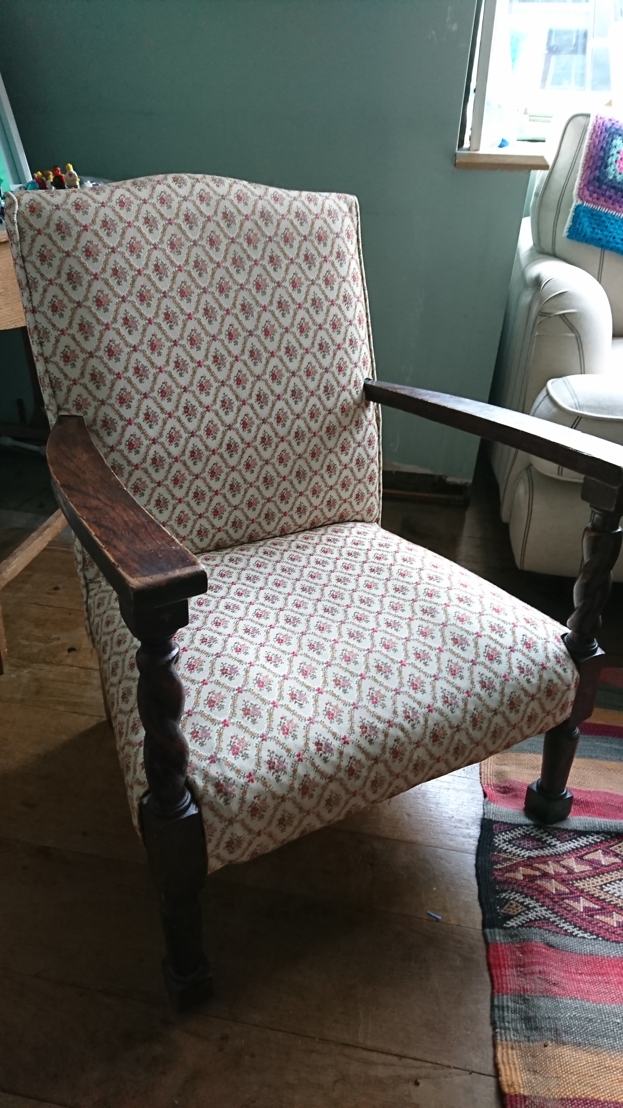 A quick refill in all the right places and some Celia Birtwell Jacobean fabric and it is a completely different piece.