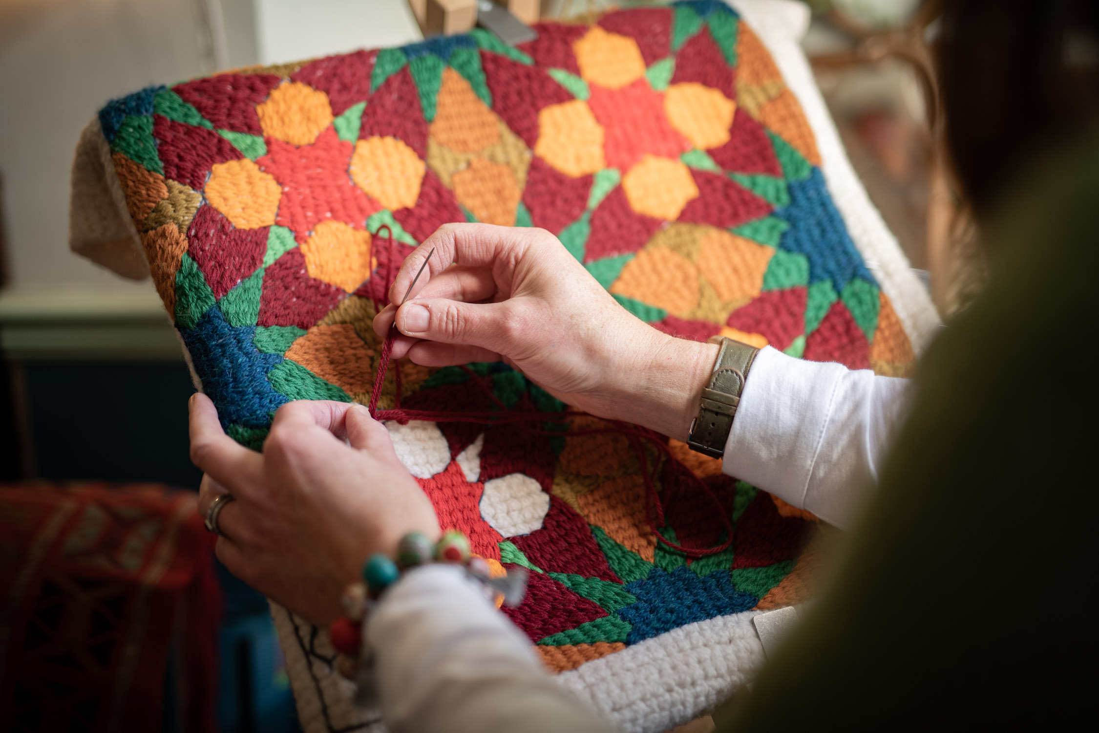 Every so often there is time to work on some pieces that are not commissions or projects. In these moments I try to develop ideas, my latest is create fabric using a felted crochet canvas to my own design and then using chain stitch to create pattern or depth. At the moment the panels are cushion sized but the experiments continue.